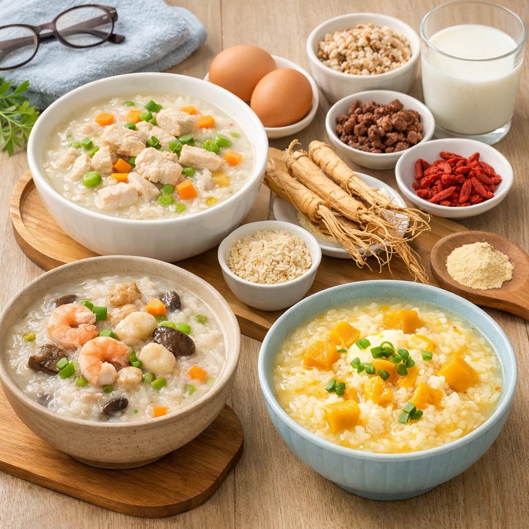 粥品不但容易消化吸收,也能依照身體狀況加入不同食材,補充蛋白質、維生素與熱量。尤其病後、術後的老人家,若能透過均衡的粥品慢慢進食,不只能減輕腸胃負擔,也有助於提升元氣、促進修復。